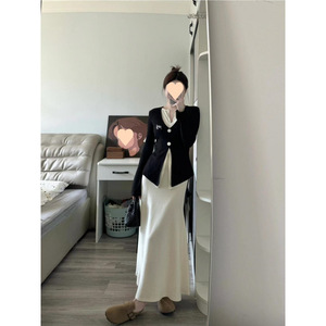 2025新款韩版时尚百搭显瘦长袖打底衫黑色气质韩系上衣针织衫套装