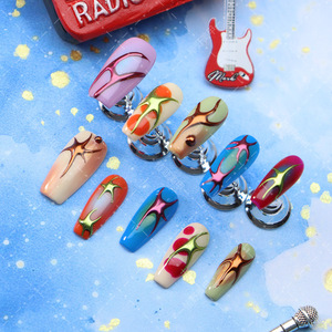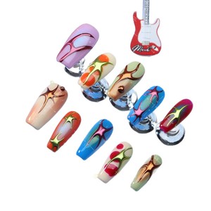 人気のある服装甲y 2k風甲片の手描きの花の色は魔鏡の粉の海星の芸術感の中で長い梯子の偽甲片に染めます。