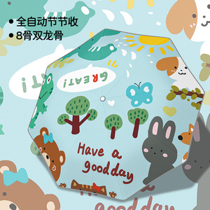 逆反発防止子供用傘、学生用自動開閉式、小学校・幼稚園用、日よけ・雨よけ両用、リングバックルと反射ストリップのデザイン