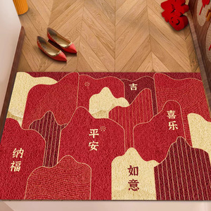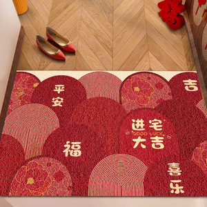 入户门地垫红色喜庆家用门口脚垫可裁剪耐脏免打理丝圈门垫