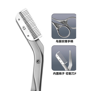 国境を越えたスポット安全ステンレス鋼眉毛はさみと眉毛コーム兼用はさみ、傷防止、毛が入らない眉毛トリマー、美容コームはさみ
