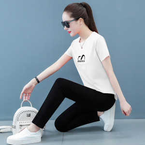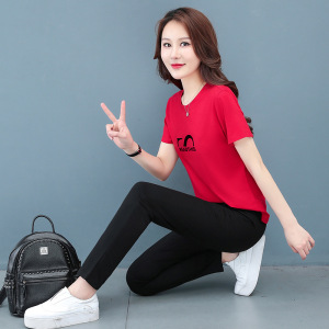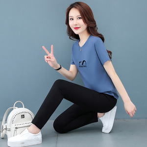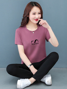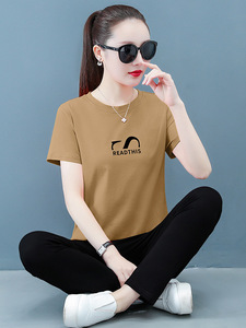 純綿カジュアルスポーツウェアスーツ女性の薄い2025夏の新しいスタイル中年母親ツーピーススーツ西洋スタイル夏