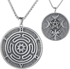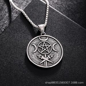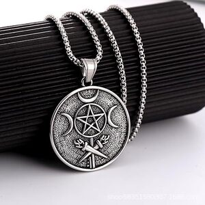 クロスボーダー Hecate 3 月の女神ネックレスステンレス鋼魔女両面ペンダント異教の魔術エジプトのお守りビーズ