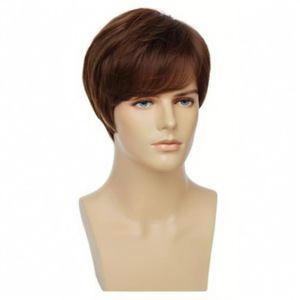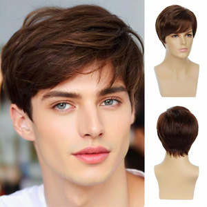 新しい外国貿易メンズウィッグブラウン斜め前髪ふわふわビジネススタイル高温シルクヘッドギアメーカー在庫卸売