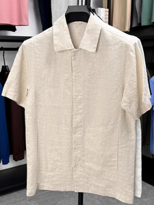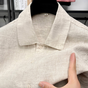 夏 100% ピュアリネン若者と中年男性のための中国風半袖ラペルシャツ通気性シャツ 2025 新しい半袖