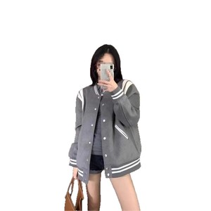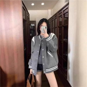 短外套感春秋季宽松百搭新款灰色复古学院风2024设计美式棒球服女