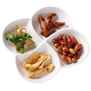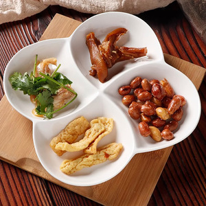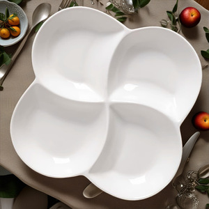 純白の陶磁器の食事皿の段のアイデアの盛り合わせの朝食の4段の乾燥している果物のダイエットする家庭用の食器の軽食