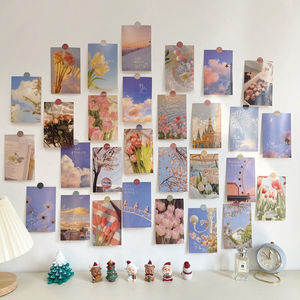 30枚のカードセットインスタイルの小さな新鮮な花寝室の部屋寮の背景壁装飾ポスター絵画