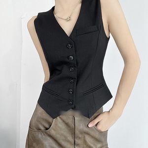 狂った心の中の灰色の修身の袖なしのスーツのベストのコートの女性の春夏の短いタイプの臍のvネックの肩の上着