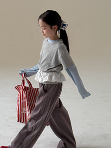 TCkids2025春のかわいいクマのレースの女の子用カーテン、重ね着雰囲気の万能スカート