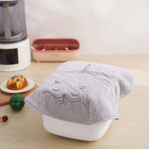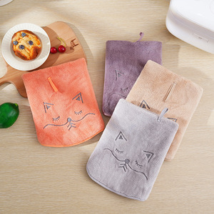 加大珊瑚绒可爱卡通猫咪网红擦手巾柔软吸水厨房家用清洁巾圆巾