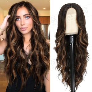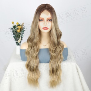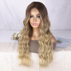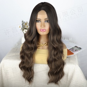 ウィッグ ヨーロッパとアメリカの女性用フロントレースウィッグ ミドルパート リトルレース ピンチハイライト ロングカーリーヘア 化学繊維ヘッドギア 外国貿易ウィッグ