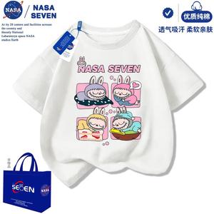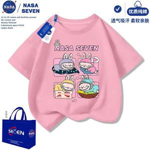 NASA 漫画ラブブ純綿 Tシャツ半袖男の子と女の子夏の新しいラブブ半袖カジュアル中大型子供