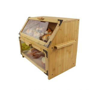 竹製の大容量パンボックス収納ボックスはキッチン収納に適しています