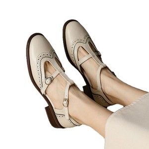 2025 春夏レトロ中空ワンストラップメリージェーンシューズ女性の新しい小さな革の靴厚いヒールソフト表面シングルシューズ卸売
