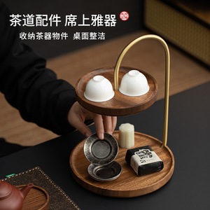 黒クルミ多層リビングルームスナックディスプレイトレイ、黒クルミ材二層トレイディスプレイスタンド、フルーツプレート、軽奢レトロ