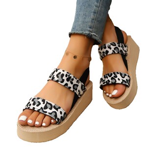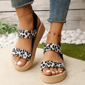 2025年夏の新型欧米のビーチシューズのヒョウ柄の飛織の大きいサイズの女性靴の厚い底の外国貿易のサンダルの女性