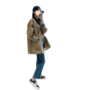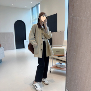 风衣外套2025撞色宽松春秋新款小个子中长款休闲韩系复古高级