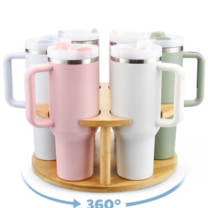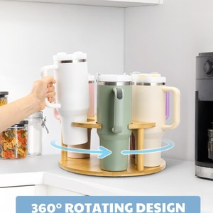 木製二層回転可能な水コップ棚実木デスクトップスタンリーカップ回転棚大容量収納棚