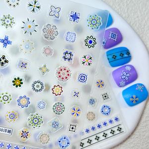 5d エンボス加工レトロエスニックスタイルネイルアートステッカー塗装パターンボヘミアンネイルステッカー万華鏡パターン