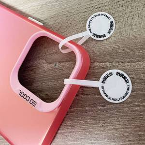カスタム携帯電話ケース用粘着ラベル、吊り下げタグ、中間に接着剤なし、剥がすと返品不可、ジュエリーステッカー、強力粘着、偽造防止