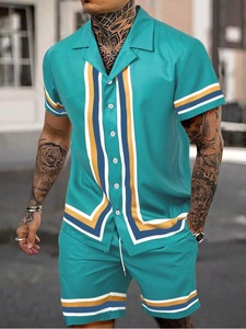 男性のスキューバ襟シャツ2点セットファッション気質ショッピングカジュアルプリント半袖シャツ半ズボン