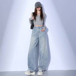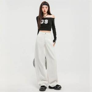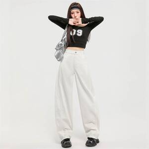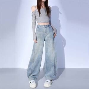 批发拼接设计感弯刀牛仔裤女阔腿宽松显瘦时尚高品质春夏