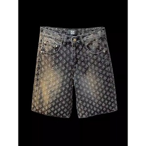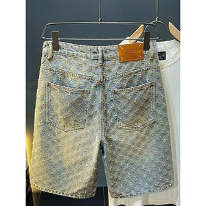2025年アメリカンスタイル新作デニムショートパンツ メンズ 夏 ゆったりストレート ダメージ加工 ジャガード織り 高級カジュアル 多用途 半袖