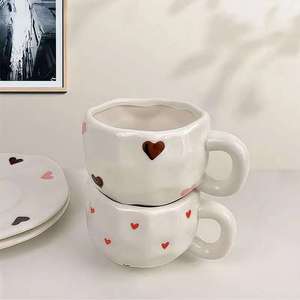 国境を越えたコーヒーカップ手描きかわいい陶磁器カップ家庭用高颜値午後カップカップクリエイティブ少女心カップ