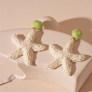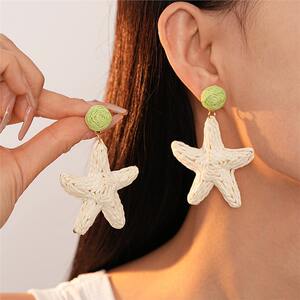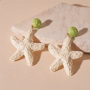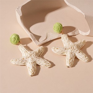 スチールニードルホワイトラフィアスターフィッシュイヤリング