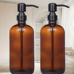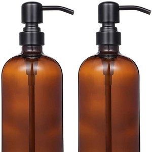 亚马逊供应链 玻璃6盎司洗手液玻璃瓶不锈钢按压式分装瓶 皂液器