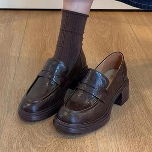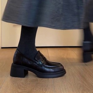 牛皮版 ~ 本革の厚い底の楽福の靴の女性の英倫の百合は通勤します。