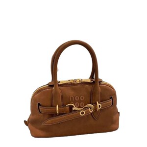 Miu ミュウ ソフトシープスキン シェルバッグ レトロ 本革 ボウリングバッグ Miu ボストン ポータブル ショルダー クロスボディ レディースバッグ