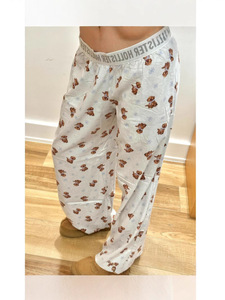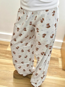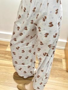 かわいいベアーのプリントは腰のカジュアルなズボンの女性2025春の新しいサイズの散歩の足をつないで長いズボンを引きずっています。