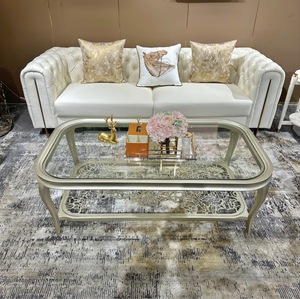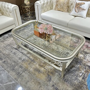 美式轻奢长茶几高级实木香槟金香槟银双层时尚玫瑰1.4/1.6/1.8米