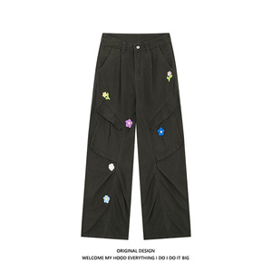 2025夏のレトロオリジナルデザイン感工装ズボンアメリカのファッションブランドのゆるい小衆花蕊刺繍カジュアルパンツ