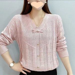 洋气百搭领长袖针织衫女2025春秋新款时尚宽松显瘦中年妈妈上衣