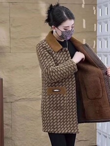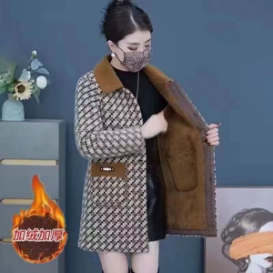 水貂绒加绒加厚外套女中妈妈装中长款冬季新款减龄时尚呢大衣