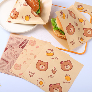 朝食サンドイッチ包装紙折り目なし食品グレード耐油バーガーハンドケーキ包装紙袋三角袋家庭用