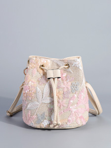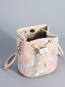 2025夏の新型ピンク欧米刺繍スパンコールクロスボーダー高級感バケツ斜め掛け女性カバンファッション大衆シングル肩