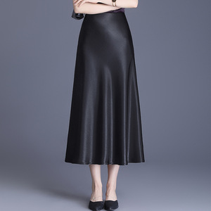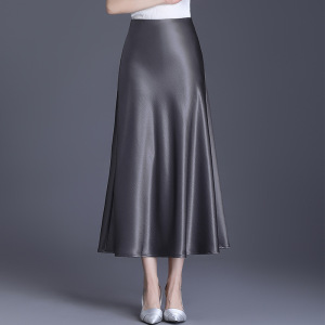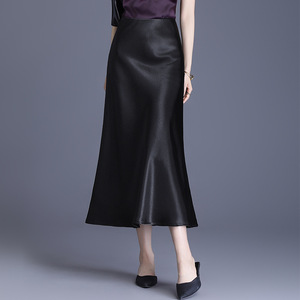 サテンフィッシュテールスカート女性のための 2025 春夏新作ハイウエストドレープミドル丈ヒップカバーロングスカート