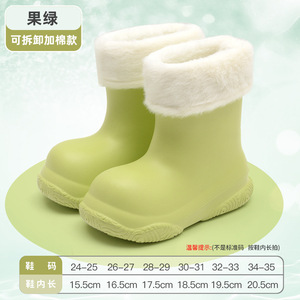 国境を越えたドーパミン児童雨靴少女スポットEVA軽量滑り止め短筒男子赤ちゃんベルベット雨靴