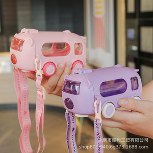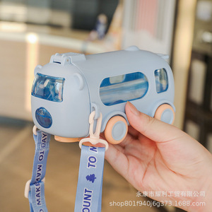 子供のコップの漫画の赤ちゃんのバスのストローのコップのかわいい男の子の幼稚園の学校に行く専用の小さい車の水筒