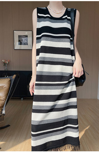 プラスサイズ 2025 夏ストライプ裾タッセルアイスシルクニットドレスルーズ痩身カジュアルロングベストドレス
