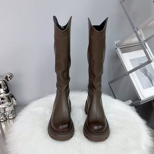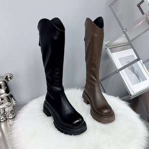 赵露思同款软皮长靴子2024年高筒厚底增高骑士靴马蹄跟机车靴女