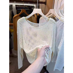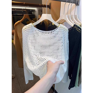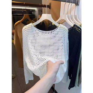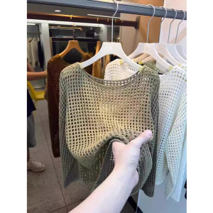 フランスの長袖のニットの女性2025夏の薄いタイプの外はゆったりとしています。