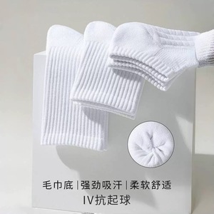 純綿男性中筒靴下ウール靴下タオル底スポーツ靴下綿白ストッキングバスケットボール靴下