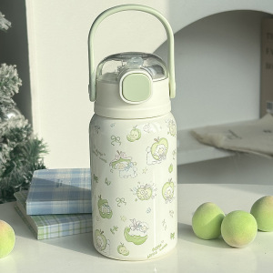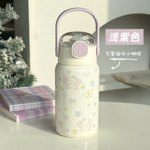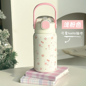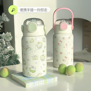新型コップ女子高颜値保温カップ316ステンレス学生児童ストローカップ携帯大容量コップ