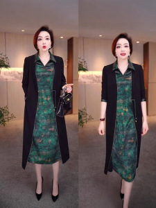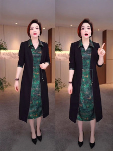 复古阔太贵夫人假两件连衣裙大码遮肉显瘦气质过膝裙子2025春