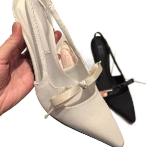 尖ったサテンのハイヒールの女性2025春夏の新型の足はピンクの美しいハイヒールのサンダルの浅い靴を漕いでいます。
